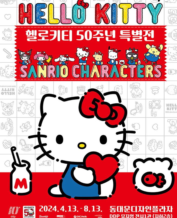 전 세계에서 사랑받고 있는 '헬로키티'의 2024년, 탄생 50주년을 기념하여 <헬로키티 50주년 특별전-산리오캐릭터즈와의 여행>이 동대문디자인플라자(DDP)에서 열립니다.